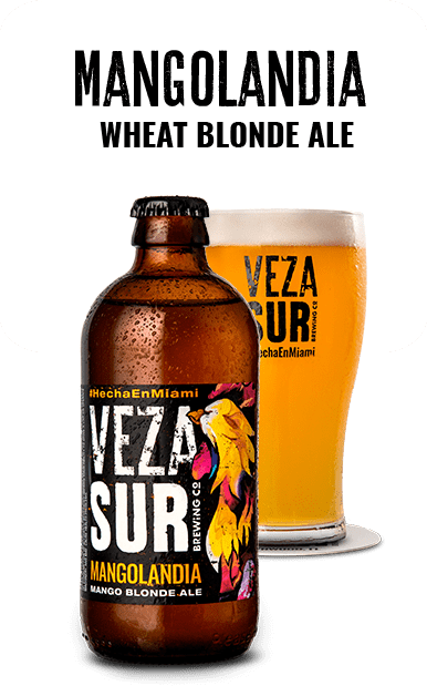 MANGOLANDIA. MANGO WHEAT ALE. Did you ever wake up from the sound of ripe mangos falling on your roof? This bright and sessionable Wheat Ale is Miami Summer in a pint.